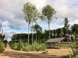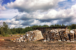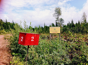 Хороша речка Кодима, хлебушек да застолья, но жанр нынешнего моего путешествия призывает меня двигаться дальше, оставляя за спиной ту дорогу, по которой мы три года назад возвращались в Акичкино. К слову сказать, здесь, на Кодиме есть избушка охотников. И, хотя печка в ней уже и разобрана, это отличный вариант для ночевки. К сожалению, мне ночевать еще слишком рано, время только недавно миновало полудень. Тут мне встречается первая и предпоследняя машина с людьми за все время двухдневной поездки. УАЗик проносится мимо, пока я расхаживаю вокруг избушки так быстро, что я не успеваю додумать мысль расспросить их о том, правильной ли дорогой я еду. Ну, да их ладно. Что это за исследование такое - с подсказками? Решение ехать южной дорогой приходит мгновенно, стоит добраться до развилки с карьером. Оттуда, из-за карьера доносится явственный шум каких-то дорожных, а может быть, лесоповальных работ. В самом карьере виднеется техника - то ли вагончики, то ли мобильные энергостанции на колесах, ярко-жёлтого цвета, вполне современного вида. Соваться вглубь этой деятельности, да еще по перепаханной глине не хочется, дорога же вправо выглядит более привлекательной и пустынной. Выбрав эту дорогу двигаюсь почти все время прямо. Здесь по пути дважды уходят направо, почти строго на юг две, видимо не до конца еще состыкованные отворотки. Первая, почти сразу же за карьером по идее стыкуется с тем поворотом, который я не стал проверять, двигаясь к трассе. Вторая - к тому самому Тупику, от которого мне пришлось развернуться обратно. Что же, и с этой стороны эти дороги не очень. Они не отсыпаны и проехать по ним можно было бы разве что на УАЗе в сухую погоду. Так что, жалеть, в общем-то, не о чем - пока что я еду единственно верной и самой короткой при этом дорогой. По пути почти не встречается вырубов. Либо они уже очень старые и заросшие. Первая образцовая вырубка неожиданно открывается слева - пространство, покрытое юной порослью, густо сдобренное подлеском с одиноко торчащими тут и там постаревшими ёлками да березами. Вырубка, проведенная по всем правилам, когда взрослые, возмужалые уже дерева оставляются в редком количестве, на рассев, на рассаду, что бы разлетающиеся по ветру семена сами бы засевали окружающие, освободившиеся территории и что бы лес, таким образом, вырастал через несколько лет заново там, где прошли только что люди с пилами и топорами. Что бы сказали на это защитники зеленой природы, затрудняюсь ответить, но по-моему это работает. И здесь, на севере часто приходится видеть, как не только лес, вырубленный лет десять назад заново создает непроходимые заросли, но и как распаханные некогда, при советской власти поля засеваются семенами окрестных, зачастую далеких лесов на глазах, за одно-полтора десятилетия. Так, к примеру, в Акичкино, на бывшем колхозном поле давно уже шумит смешанный лес и туда, куда местные жители еще в 90-хх ходили на сенокосы сейчас уже ходят исключительно за грибами да ягодой. Да, товарищи, но такой обсыпной земляники, как на поле в Акичкино я нигде, пожалуй, не видел. А в лесу, покрывающем это бывшее поле встречаются уже вполне зрелые березы и сосны. А на краю этой, вот, вырубки, что я сейчас проезжаю, выстроен неслабый навес, под которым по рассказам Осипова Алексея местный предприниматель Буторин, занимающийся в Устьянских краях 