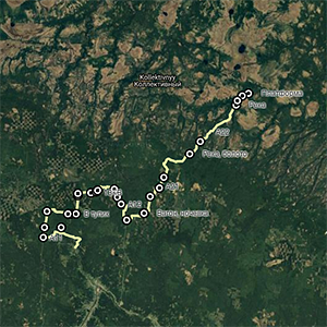 День первый – Мили здесь никем не меряны, — отозвался Колоброд. — До «Забытого Приюта» от Брыля день пути. А дальше… Разное говорят. Дорога туда странная. Когда идешь по ней, думаешь только о том, чтобы дойти. В милях её не считают. Ранний подъем утром 3 августа не принес облегчения. Плотно, надежно укрытое небо с подоткнутыми уголками без зазоров и трещинок насытилось влагой и тучами, пролилось на землю дождем, пропитало вчера еще по-летнему пыльное полотно грунтовой дороги миллионами мелких капель, превратив её в ленту чавкающей под подошвами, раскисающей манной каши и положив тем самым конец последним надеждам на легкое блиц-путешествие в Соезерскую Пустынь. Выполнимая, относительно простая задача на глазах превращалась в сумасбродную, безответственную затею так же, как твердая, прямая дорога - в реку из расползающегося песка, не оставляющего шансов на быстрое, уверенное передвижение. План путешествия, основанный по большей части на хорошем знании местности, природных условий и географии Устьянского края, собственных туристических навыках, спортивной форме и снаряжении, умении пользоваться навигационной техникой и комфортно чувствовать себя в условиях дикой природы базировался тем не менее и на некоторых допущениях, главными из которых являлись: А - Сухая погода В - Существование и проезжаемость всех выбранных по спутниковым снимкам дорог С - Существование регулярного движения поездов от ст. Поперечка до ст. Авнюга На тему дорог поподробнее: 1 Наличие пригодных для велосипеда дорог, связующих между собой недавно открытые вырубки на севере от Акичкино со Студенецкой лесовозной трассой, тянущейся с юга на север на восток от Сметаны. Вывоз леса из окрестностей Акичкино и болота Круглое начался недавно, всего год назад и полной уверенности в том, что новые кварталы уже связаны перемычками со старыми, более северными у меня не было. Да и дороги дорогам - рознь. Спокойно передвигаться на транспорте можно лишь по отсыпанной, укрепленной гатью дороге. Прочие же пригодны только для специальной тяжелой техники - тягачей и бульдозеров. Многие из них даже не всегда раскорчеваны. И в этом смысле даже свежим спутниковым снимкам верить можно только с некоторой осторожностью - отсыпанная, проезжаемая дорога в сухую погоду из космоса выглядит так же, как неотсыпанная. 2 Проезжаемость на велосипеде северными, относительно старыми вырубками, раскинувшимися между Студенецкою трассою и дорогой, идущей от поселка Глубокий на реку Целюгу. Кварталов там много, но снимки преимущественно старые и никто из нас ни разу там не бывал. Существует и еще более северная дорога, тянущаяся с запада на восток параллельно запланированному мною пути от пересечения Студенецкой дороги с рекой Куболой на западе до все той же Целюги на востоке. Этот более северный путь был пройден нашей компанией на УАЗе летом 2013 года и в его проходимости не существовало сомнений, однако прибегнуть к нему означало увеличить общее расстояние поездки десятка на 3 километров, а по времени я был весьма ограничен, т.к. прибыть в конечную точку маршрута было необходимо никак не позднее 17:40 пятницы, 5 августа, т.к. именно в это время из Поперечки отходит поезд на большую землю, в поселок Авнюга, расположенный на берегу Северной Двины, откуда уже я планировал ехать машиной до Котласа. Др