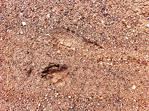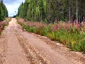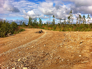 До цели немалое расстояние и я медленно еду, а сил расходую много, но прямо сейчас надо выпить воды и положить внутрь что-то питательное. Расхаживая по дороге и отдыхая от велика, я разглядываю глубокие вмятины, оставленные волчьими лапами. Площадь его отпечатка меньше следа от моей вело-туфли, зато глубина впечатляет. Видать, весит собачка немало. И пришла она как раз с севера. Блуждая взглядом по вмятинам нет-нет, да поглядываю в направлении поворота, из-за которого я только что выехал - где один волк, могут быть и другие.
