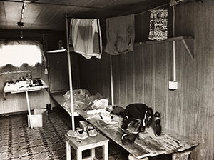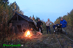 Погода стремительно портится и приближается к вечеру, серому и какому-то непроглядному. Трасса на этом участке освоена лесовозами и прилично накатана. Каменистая, с крупными, скользкими от влаги булыжниками. Для тяжелых прицепов, нагруженных лесом это неплохо, но для велика такая гребенка, похожая на стиральную доску - сущее наказание и мне приходится трястись еще какое-то время, мелко подпрыгивая и позвякивая снаряжением на голых камнях. Около десяти километров проходит прежде, чем я достигаю наконец-то развилки, нужного мне поворота на северо-восток, уходящего в соседний район, Верхнетоемский. Взгляд на юг - искушение. Двигаться дальше на север в эти мокрые сумерки, в неизвестность теперь уже кажется чистым безумием, а бегство в Бестужево - избавлением. Силы мои на исходе, а свежесть мысли отсутствует и только на одной автоматике я, помявшись, помаявшись снова взбираюсь на велик и продолжаю тупое свое продвижение к цели, выбравши правую отворотку. Приходится снова бороться с песчаной дорогой, с благодарностью вспоминая утрамбованность целюгской трассы. Атмосфера, даже сам воздух все больше сереют, становится зябко. Мышцы натружены и утратили свежесть, в голове крутится лишь мысль о ночлеге. И когда через пять километров я вдруг вижу по правую руку еще один деревянный вагончик, без сомнений сворачиваю и принимаюсь за его изучение. Назад 500/500 вперёд Волею или неволей, но мне приходится обустраиваться в неожиданном моем обиталище. Это дощатый вагончик на крепкой деревянной платформе и деревянных полозьях - внушительных размеров конструкции, которая одновременно является для него волокушей. Догадываюсь, что на этой платформе его перетаскивают с места на место. Платформа достаточно высока, более метра, и к ней приставлен дощатый настил, наподобие лесенки. Обстановка внутри, прямо скажем, спартанская - двухъярусные полати, стол, лавка и печка. В углу имеется что-то вроде буфета, с запасами в виде крупы, соли и чая, давно пришедшими в окончательную негодность. Но что наиболее для меня актуально - на полу рядом с печкой сложен небольшой запас наколотых дров. Предшественники мои, соблюдая неписаный закон таежного жителя оставили для будущих посетителей самое главное - немного продуктов и дров. Не страшно, что продукты испорчены, я рассчитываю на свои. Но дрова в эту сырую и пасмурную погоду, в особенности учитывая, что спальника у меня с собой не имеется - более, чем уместны. Здесь, посреди этой Богом, людьми забытой дороги я особенно остро ощущаю свое одиночество. В точке, одинаково удаленной от конца и начала. И достаточно удаленной. Более 50-ти км оставлено за спиной и примерно столько же предстоит мне назавтра. С достижением Целюгской лесовозки появляется и еще один вариант - бегство к югу, к Бестужево, до которого даже поменьше, наверное, километров 30. Погода, пошедшая было на лад и окрылявшая почти всю дорогу к вечеру снова испортилась, съёжилась, повисла недоброю влагой и бесцветными сумерками, заволокла небо тучами, а уши плотною ватой и в этом потускневшем безмолвии мне действительно кажется, что я - последний человек на Земле. Что в этом пустом, тихом мире просто не может быть чего-то еще, не может быть жизни, движения. Все замерло и здесь никто никогда не проедет. Не шелохнется сбитая ветка, не пролетит над дорогою птица. Следы узких 