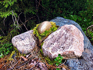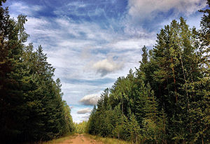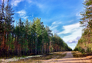 Сегодня последний участок дороги к карьеру по-летнему влажен, закрыт подступающими к самому краю кустарником и деревьями. И одна только радость - начинается едва заметный уклон, какое-то время даже получается катиться под горку, выскакивая на пустующий, осиротевший участок, освобожденный от леса, на котором еще полтора года назад работали люди. Сегодня здесь нету людей, нету техники и нет пачек сгруженного леса. А значит, и нечего думать устраивать здесь ночевку, случись что с дальнейшей дорогой, погодой или еще в связи с какими-нибудь обстоятельствами. И от стаи волков негде будет укрыться. Поозиравшись на грустное зрелище, разыскиваю поворот вправо, ныряю заново в лес и принимаюсь за последний участок, отделяющий меня от Соозерской Пустыни. Начало участка такое же затенённое, мокрое. Грунт дороги здесь, к слову сказать, поплотнее - это утрамбованная, твердая глина и нет песка, что не может не радовать. Однако, первые километры настолько закрыты деревьями, что дорога не сохнет, воды в виде луж очень много и я, окончательно измотавшись решаю делать привал. Навигатор показывает 16.8 км и около четырех часов в пути - чудовищно медленно. А погоду меж делом растягивает. Я сижу на закрытом участке, вокруг море травы и подлеска и нет ни единой полянки, горелка пыхтит, стоя прям на дороге, но даже здесь мне отчетливо видно, что высокая облачность расползается, на верхушках все больше золотистого отблеска и долгожданная синева все уверенней проявляется тут и там в виде щелочек и разрывов. А раз так, то не следует заставлять себя ждать, и ограничившись чаем с печеньками, снова двигаюсь в путь. Как это часто случается, долгожданное облегчение, перемена течения жизни происходит именно в тот момент, когда ты уже на пределе, отчаялся. Когда от светлой и радостной полосы тебя отделяет какой-то день, километр, последний потраченный рубль, удар топора или написанная строчка кода. Примеров таких предостаточно в классике и собственный опыт пестрит от подобных событиев. Бывает, сидишь до последнего на работе, не получается что-то, пора быстрее бежать к электричке и вот, в последний момент вдруг срабатывает, находится нужное слово, искомая функция, является вдруг прояснение и над чем безуспешно корпел с самого утра неожиданно получается за эти последние две минуты. Наученный личным опытом, я не выказываю удивления, когда через несколько километров дорога разительно изменяется, над головой расступаются ветви, окружающий воздух теплеет, наверху зажигается солнце, а в моем сердце - надежда. Следов от дождей вдруг становится меньше, дорога все суше и тверже и пропитанный влагой безрадостный день превращается в теплый, искрящийся ранний вечер. Последние капли дождя сияют на листьях еще какое-то время, но вот и их становится меньше и вскоре я уж не еду, лечу со свистом по уверенно пробегающей к Соозерску дороге с обочинами, выстеленными светло-зелеными мхами и кочками, усыпанными краснеющей крупной брусникой. В это действительно трудно поверить, но я теперь уже еду на скорости, наслаждаясь ветерком и полетом, ловя всеми фибрами радость поездки с мелькающими соснами и болотинами. После полутора дней неустанной работы и черепашьего продвижения. Один раз останавливаюсь возле то ль озера, то ли болота - пополнить запасы воды - и снова двигаюсь дальше. Местность те