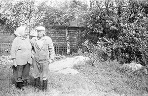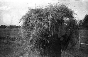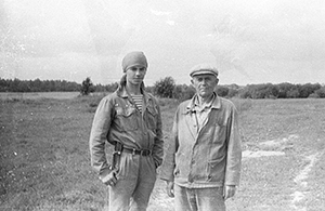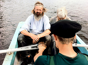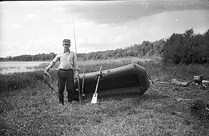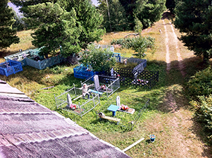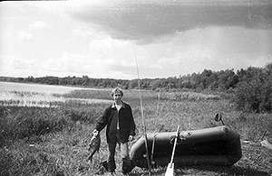 Становится жарковато и я - по свежим лесам и в окошечко - опускаюсь на землю, чтобы сходить за квасом, купленным в Поперечке. Появленье холодного кваса здесь встречается с одобрением. Поработали и вот - благодать, улыбаются парни. Делаем перерыв и пьем квас, любуясь на озеро. Видим, как женщины, покончив с прополкою направляются к берегу для купания.