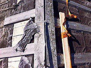 Так я напрашиваюсь на работу. Лезть наверх не то, что бы страшно, но боязно - леса приколочены наспех, как временные. Пара гвоздей - все, чем цепляется перекладина к стенке. Сами стены строения давно уж не только потрескались, но и сильно прогнили и выветрились. Скорее на честном слове и духе, чем на прочности держатся. Пара досок, перекинутых на поперечинах - это этаж. Еще. Следующий. Забираюсь наверх. Как звать? Сергей. Стало быть, тёзка. В общем, наша задача - затаскивать наверх доски и палки и достраивать дальше леса. Так, чтобы можно было забраться на крышу. Как доберемся до крыши - так станем затаскивать рубероид и там его расстилать.
