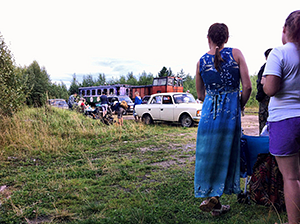 По мере сближения с полуостровом я все отчетливей понимаю, что в этот раз я, кажется, здесь не один. Еще с того берега можно было расслышать характерные звуки - стук топора, жужжанье пилы и отдельные возгласы, а теперь здесь, под кедрами становится ясно, что те звуки - отсюда. Какие-то добровольцы занялись латанием храма и уборкой на его территории - женщины, повязанные косынками перетаскивают охапки травы и какого-то мусора, мужики увлеченно колотят конструкции непонятного назначения и по первости меня даже расстраивает такое соседство - я приехал глотнуть тишины, заглянуть через околицу мира - что там, с той стороны - а здесь вовсю происходит ремонт и хозяйничанье. Что-то даже схожее с ревностью поднимается на мгновение, толкается в сердце и тревожит какое-то время, не знаю ведь, что за люди и какого мне ждать поворота событий. Умею ли я чинить бензопилы? Таким, вот, вопросом останавливает меня первая тётушка, только я успеваю заехать за покосившийся угол Церкви. И нисколько ее не смущает встреча с человеком на велике посреди здешней пустоши. Весьма ошарашенно отвечаю, что, дескать, сейчас - не умею, я же два дня под дождем и в дороге, какие теперь бензопилы… Её это не сильно расстраивает и я двигаюсь дальше устраиваться, подыскивать место для жизни - поезд мой теперь только завтра, я умудрился приехать почти что за сутки. Погода располагает к прогулке и еще хочется посмотреть Поперечку, разведать, откуда завтра отправится поезд, к тому же еще втайне надеюсь найти в том поселке продуктовый магазин и в магазине - нормальной еды и может быть пива. Ведомый сиими надеждами беру с собой самое ценное, меняю велосипедные туфли на обычные спортивные тапочки и осматриваю для начала берег, после же двигаюсь в направлении Поперечки. Соезерская Пустынь Не страшно потерять уменье удивлять страшнее потерять уменье удивляться Для осознанного течения жизни крайне необходима готовность ко всяческим неожиданностям, к столкновению с неизведанным, с чудом. Следование своим распорядком, привычкам - важный навык, конечно же, позволяющий двигаться трудными водами повседневной действительности, не тонуть в них и не терять силы попусту, отрабатывать однотипные ситуации, не доводя до сознания серость, предсказуемость и повторяемость подавляющей части своей скучной жизни. Нужен он, этот навык. Ненаученные автоматике мы давно бы уже утонули в одноцветной, бескрайней заснеженной степи обыденности. Так что, тем более важно заметить и не проскочить, глядя под ноги перемену в течении, в строгом ритме. Возвращаясь обратно к стоянке и проходя мимо храма пересекаюсь с товарищами, трудящимися возле оного и расспрашиваю их о пути к Поперечке, о работающих магазинах и о расписании поезда. Поезд - да, будет завтра, магазины, наверное, закрыты, а вот помощь посильная не помешала б. Сославшися на тоску по продуктам, усталость и необходимость разведать дорогу назавтра я отговариваюсь, а здоровый детина с крестом на широкой и седовласой груди объясняет, что, дескать, во-первых мы тебя и сами накормим, а во-вторых когда подворачивается вдруг такая возможность потрудиться во славу Божию, занявшись благородным делом восстановления храма - это знак и награда и от такого не стоит отмахиваться, так как в следующий раз может уже не представиться. Детину звать Сергием и он уже в ле