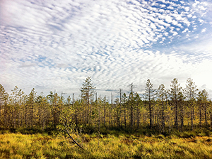 Тепловоз легко пышет по рельсам, неспешно. Тарахтит, улюлюкует дизель и расшатанная платформа, груженная брусом, мешками с пожитками - неручной кладью попутчиков, да моим ржавым великом погромыхивает бортами и качается в поворотах. Я решил ехать сверху, любоваться болотами, лесом и разгулявшимся августом. Железнодорожная насыпь петляет между сросшихся елей и березовых веток. Тепловоз раздвигает своим бурым брюхом чащобу, как настоящий хозяин тайги: величаво, степенно. Выныривает на просторы и топочет уже по болотам. Мелькают березки и сосенки, растущие на торфянике. А умытое Солнышко светит в мелкую рябь облаков, покрывающих синюю бездну от запада до востока, от юга до севера. Ветерок продувает окрестности и до сих пор сыроватую от позавчерашней езды одежду.